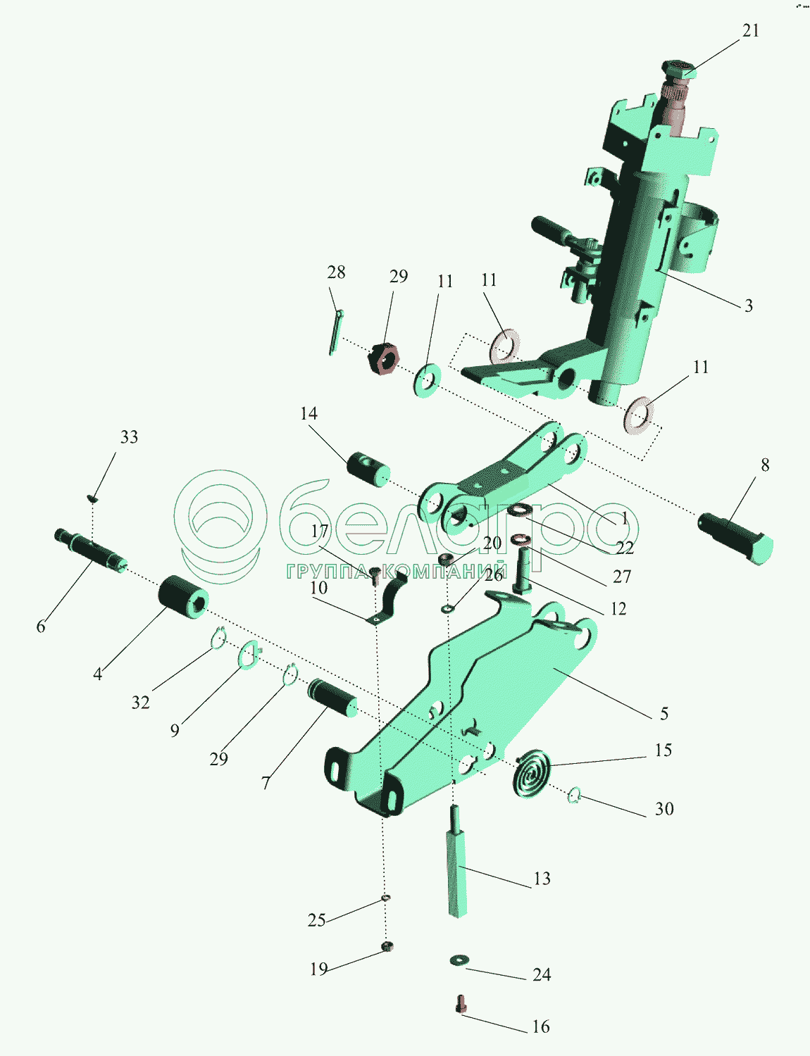 Каталог запасных частей к технике: МАЗ-437043 (Зубренок). Кронштейн с колонкой 64221-3403008