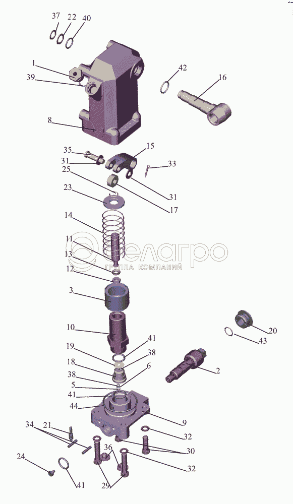 Каталог запасных частей к технике: МАЗ-437043 (Зубренок). Насос механизма подъема кабины 64221-5004010