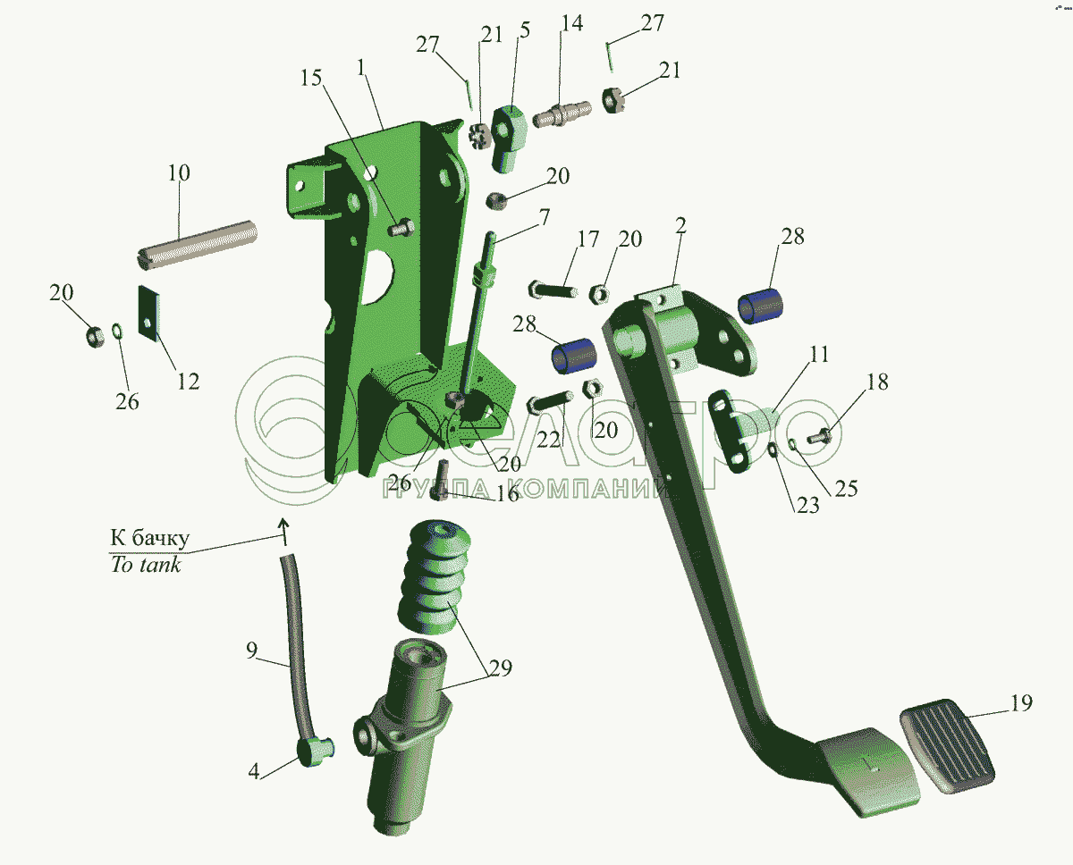 Каталог запасных частей к технике: МАЗ-437043 (Зубренок). Основание педали 64226-1602004