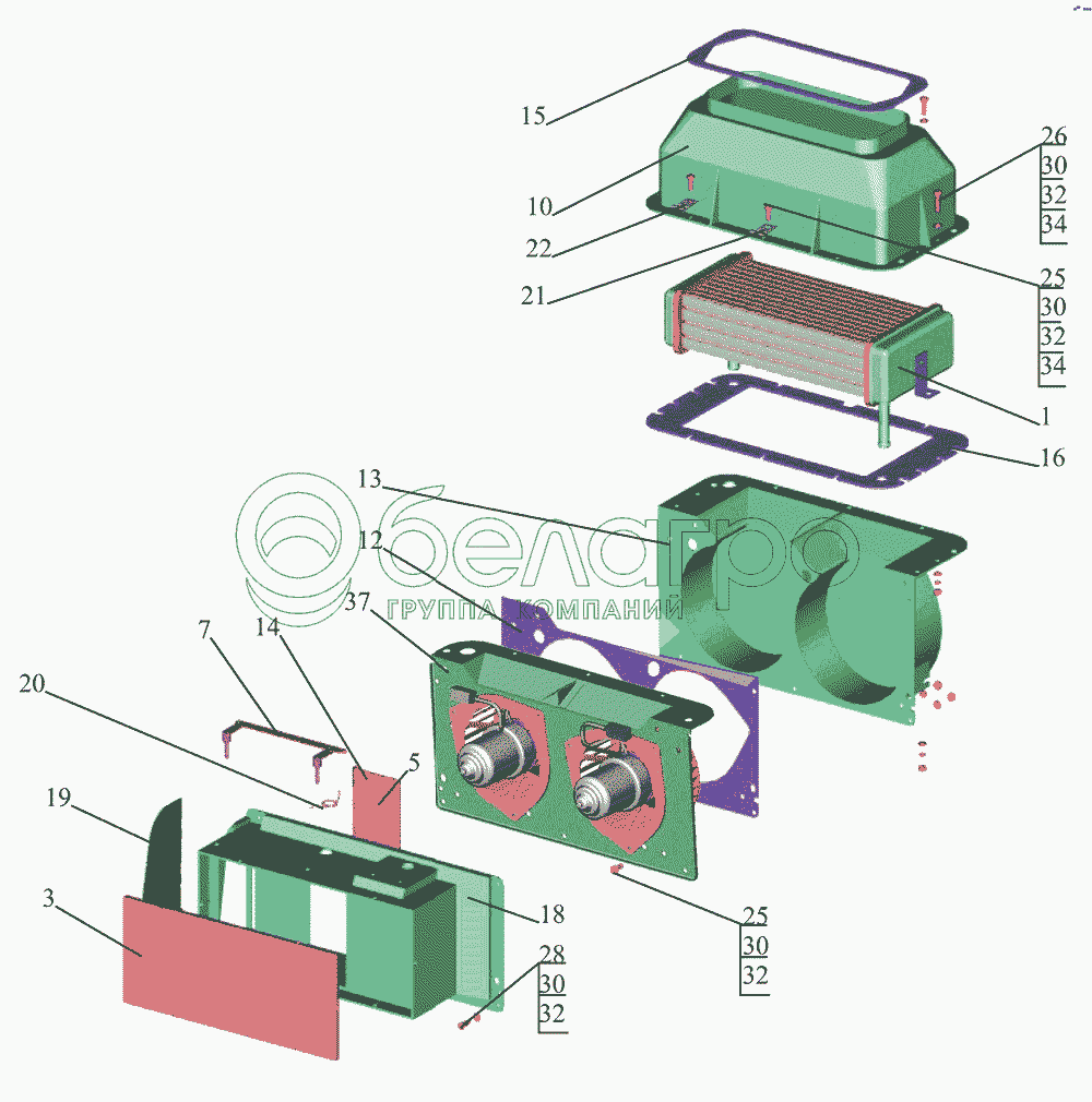Каталог запасных частей к технике: МАЗ-437043 (Зубренок). Отопитель 4370-8101010