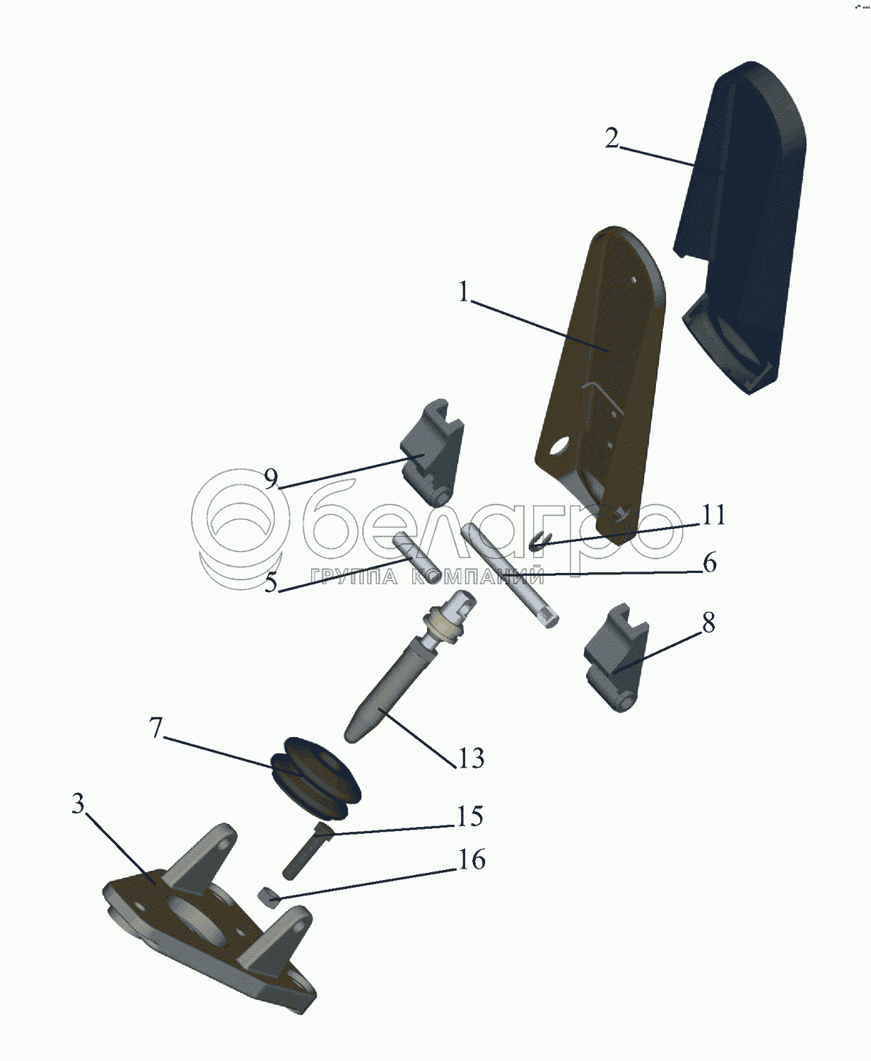 Каталог запасных частей к технике: МАЗ-437043 (Зубренок). Педаль с кронштейном 64221-3504010