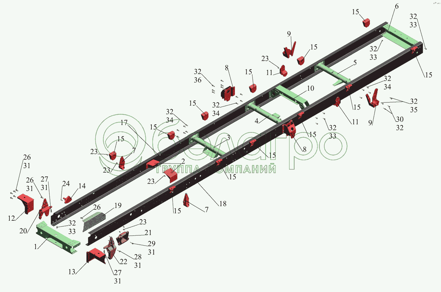 Каталог запасных частей к технике: МАЗ-437043 (Зубренок). Рама 437040-2801002