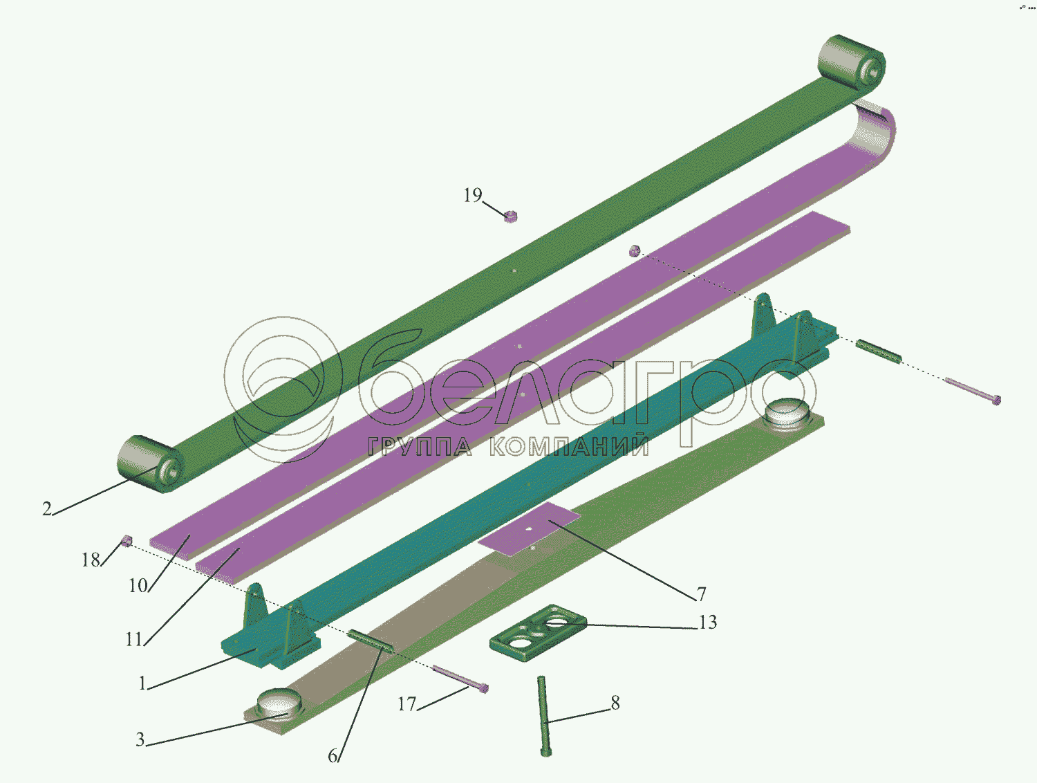 Каталог запасных частей к технике: МАЗ-437043 (Зубренок). Рессора задняя 4370-2912012
