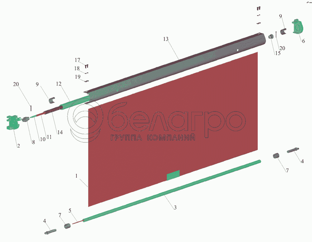 Каталог запасных частей к технике: МАЗ-437043 (Зубренок). Штора противосолнечная 5336-8204110