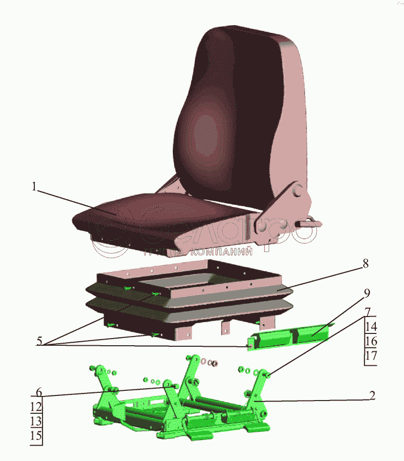 Каталог запасных частей к технике: МАЗ-437043 (Зубренок). Сиденье водителя 6430-6800010
