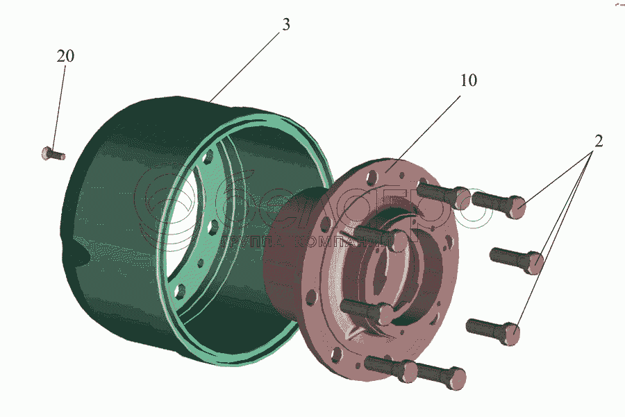 Каталог запасных частей к технике: МАЗ-437043 (Зубренок). Ступица с барабаном 4370-3104010