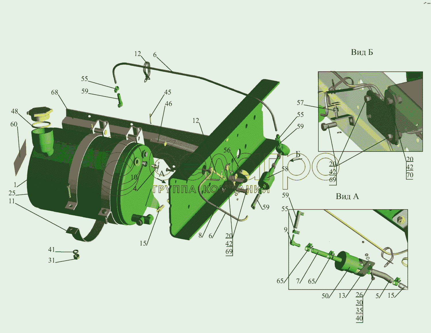 Каталог запасных частей к технике: МАЗ-437043 (Зубренок). Топливопроводы питания подогревателя 437041-1015004-030