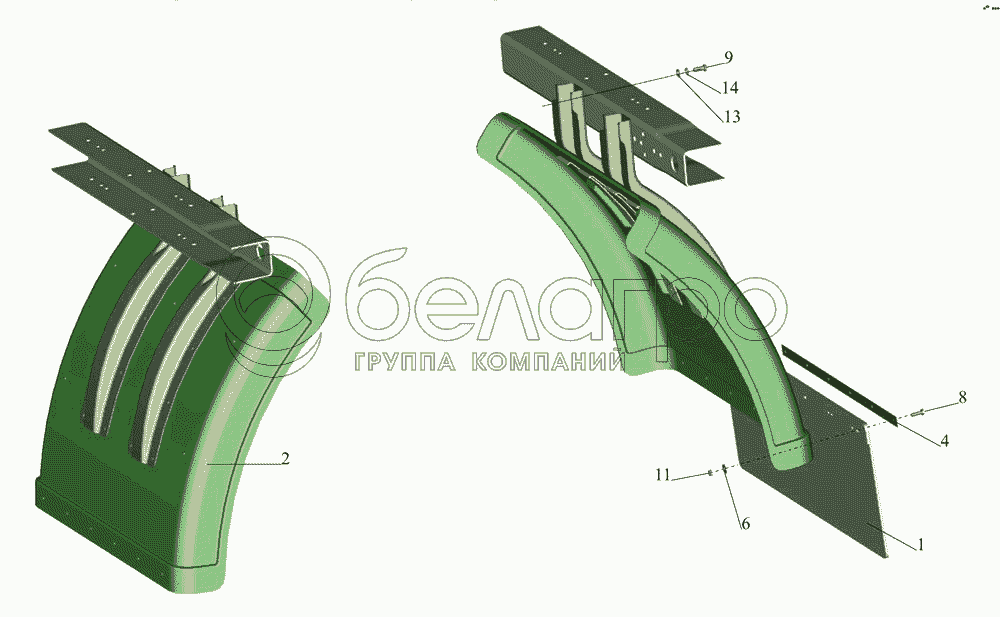 Каталог запасных частей к технике: МАЗ-437043 (Зубренок). Установка брызговиков 4370-8500048-020