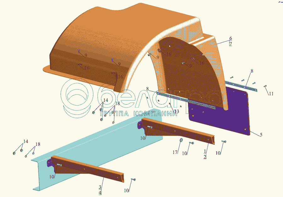 Каталог запасных частей к технике: МАЗ-437043 (Зубренок). Установка брызговиков передних колес 4370-8400025