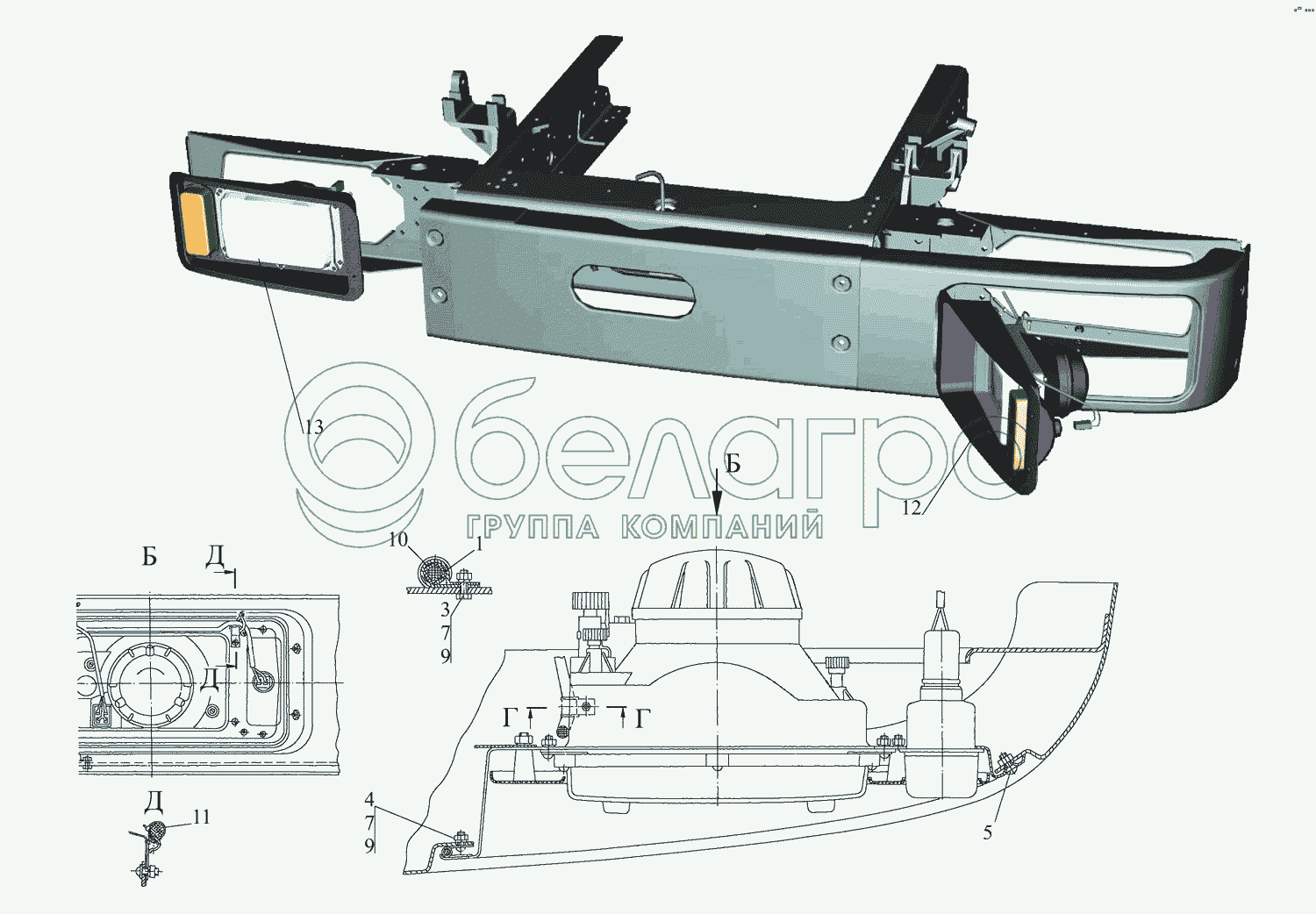 Каталог запасных частей к технике: МАЗ-437043 (Зубренок). Установка фар 437040-3700006, (-700)