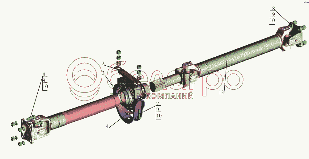 Каталог запасных частей к технике: МАЗ-437043 (Зубренок). Установка карданной передачи 4370-2200000