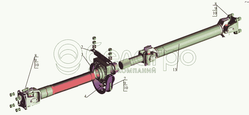 Каталог запасных частей к технике: МАЗ-437043 (Зубренок). Установка карданной передачи 4370-2200000-010