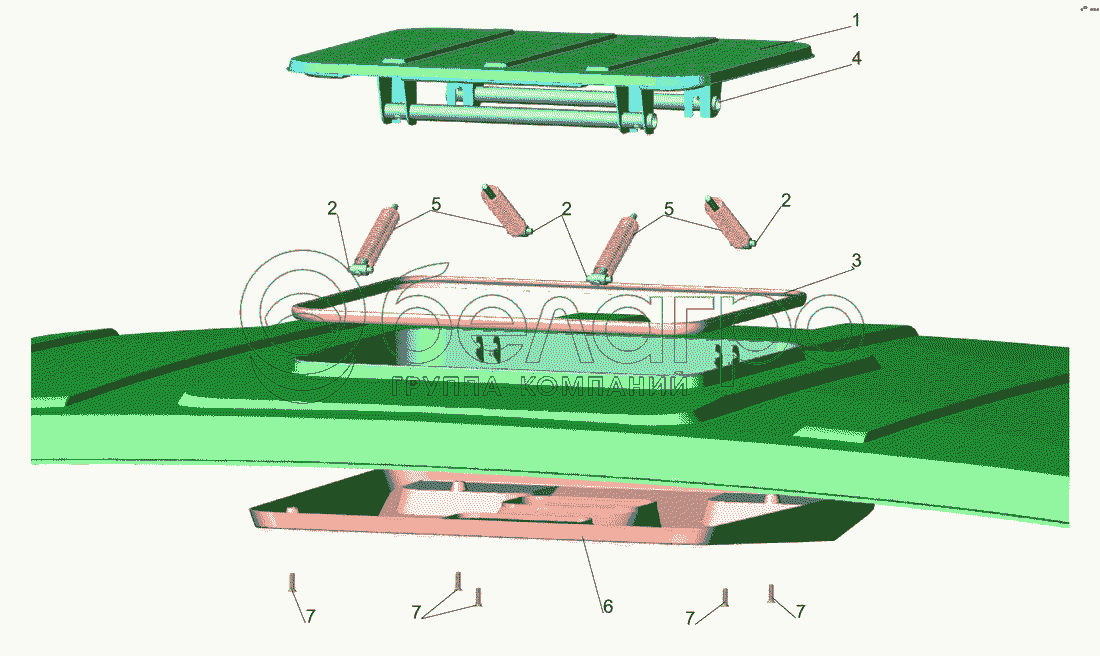 Каталог запасных частей к технике: МАЗ-437043 (Зубренок). Установка люка 64221-5700010
