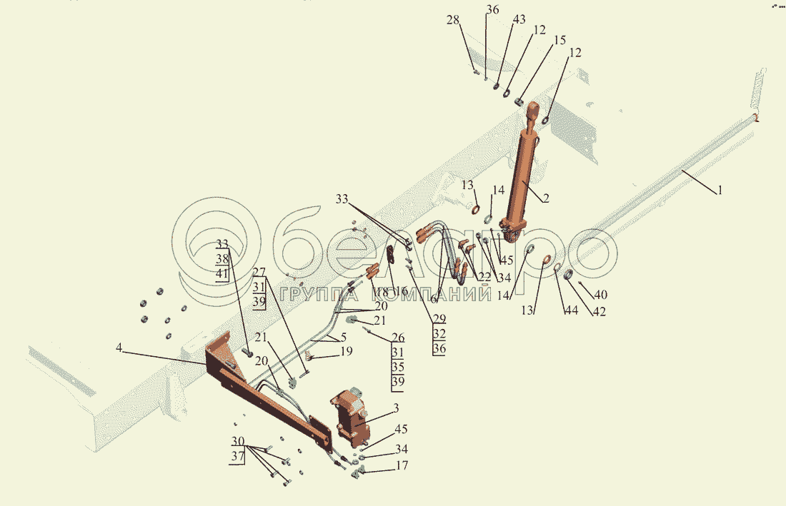 Каталог запасных частей к технике: МАЗ-437043 (Зубренок). Установка механизма подъема кабины 4370-5000040