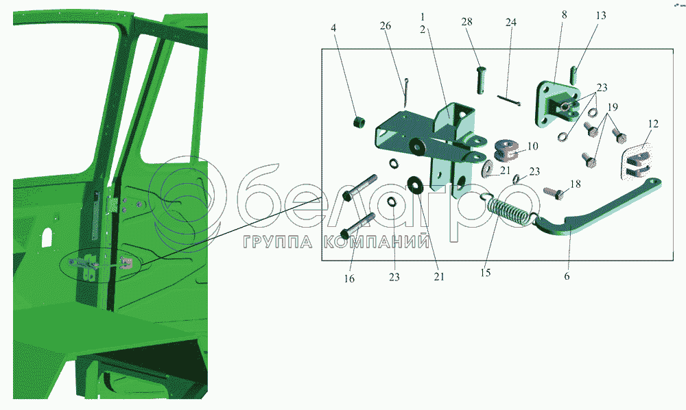 Каталог запасных частей к технике: МАЗ-437043 (Зубренок). Установка ограничителей 64221-6100006-10