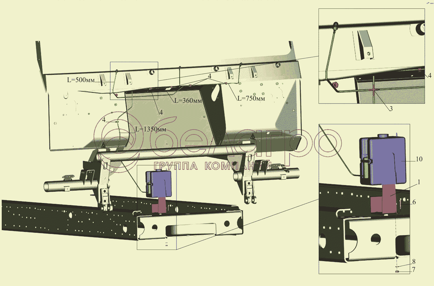 Каталог запасных частей к технике: МАЗ-437043 (Зубренок). Установка омывателя 4370-5200008-010