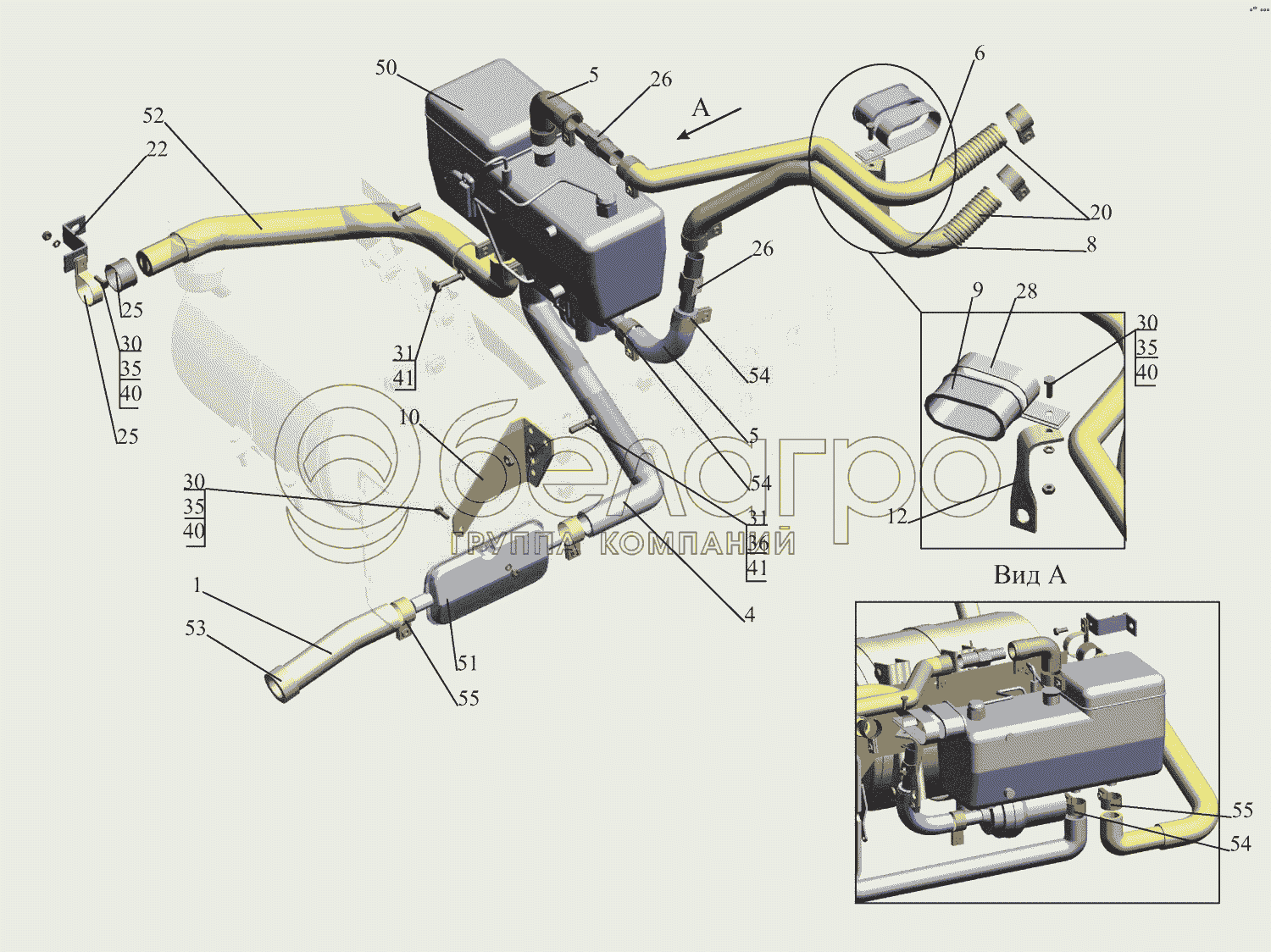 Каталог запасных частей к технике: МАЗ-437043 (Зубренок). Установка подогревателя 437041-1015001-001