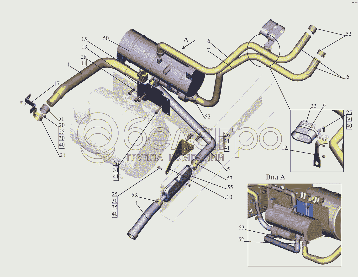 Каталог запасных частей к технике: МАЗ-437043 (Зубренок). Установка подогревателя 437041-1015001-011