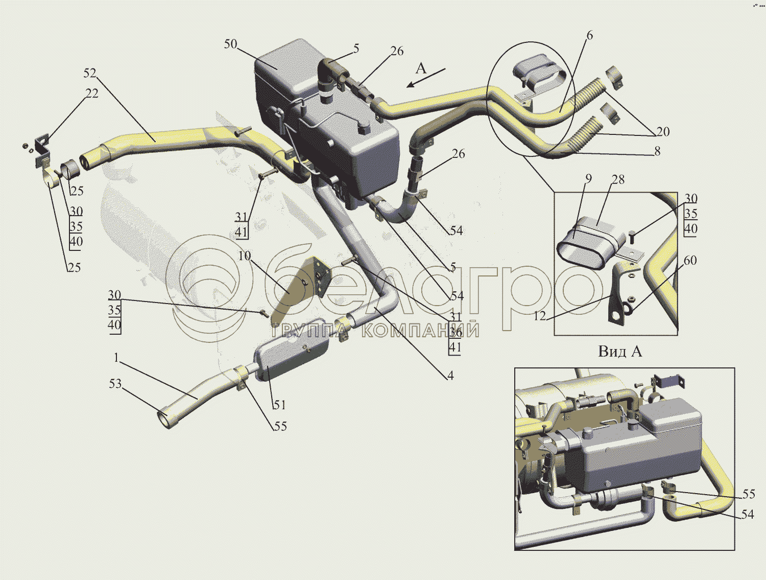 Каталог запасных частей к технике: МАЗ-437043 (Зубренок). Установка подогревателя 437041-1015001-021