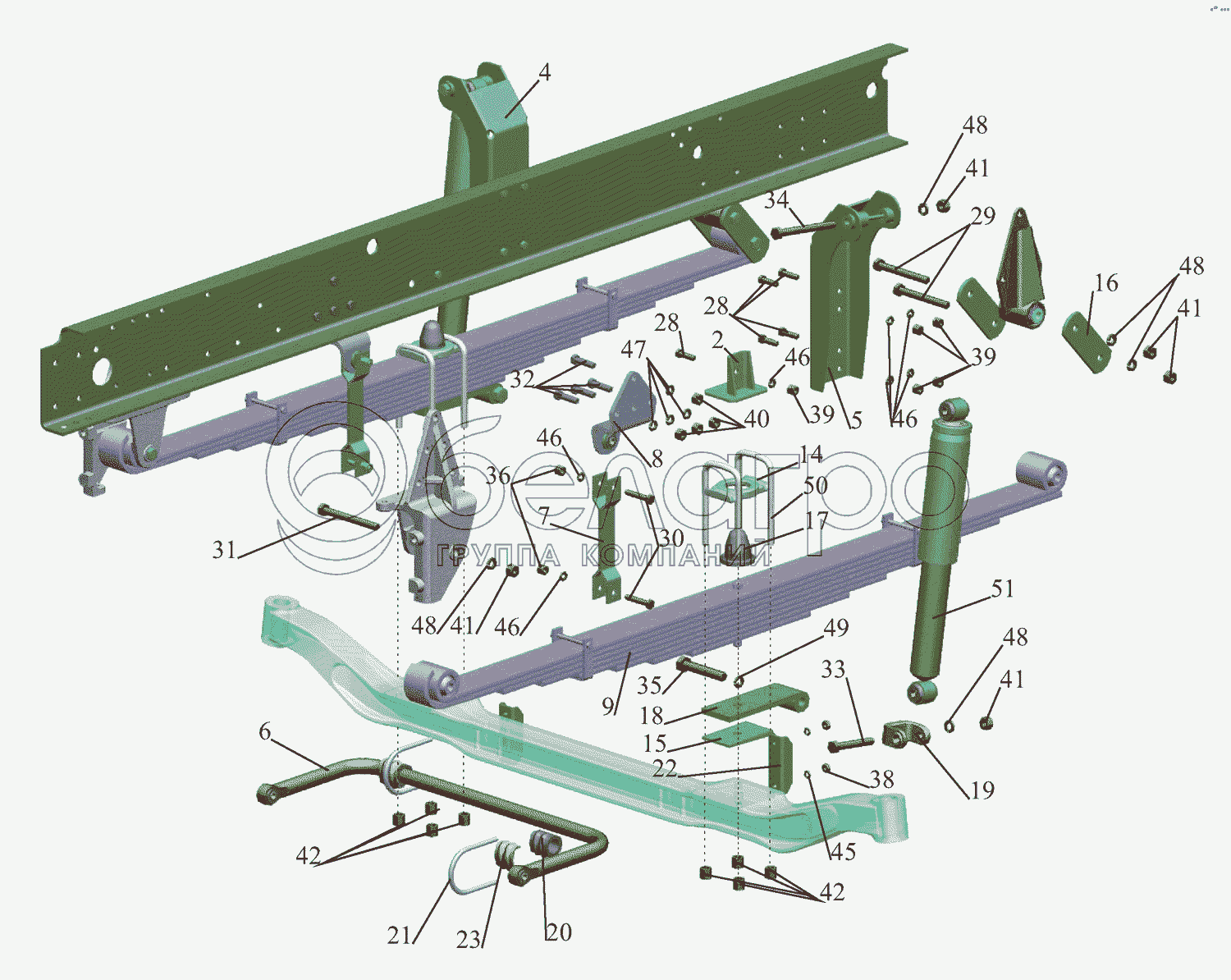Каталог запасных частей к технике: МАЗ-437043 (Зубренок). Установка подвески передней 4370-2900001-011