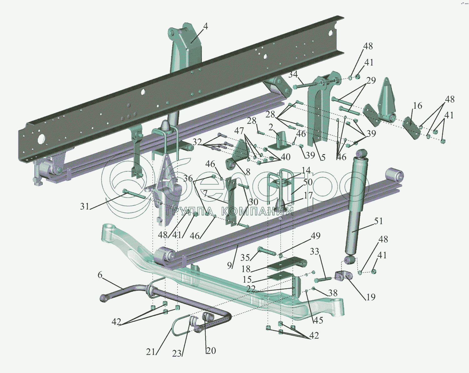 Каталог запасных частей к технике: МАЗ-437043 (Зубренок). Установка подвески передней 4370-2900001-020