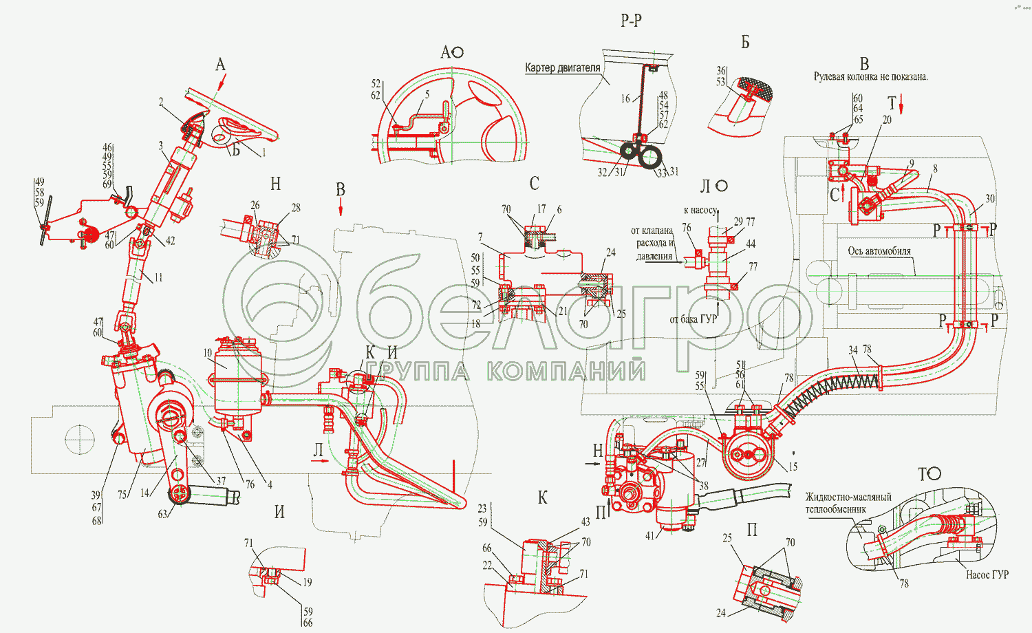 Каталог запасных частей к технике: МАЗ-437043 (Зубренок). Установка рулевого управления 437040-3400001