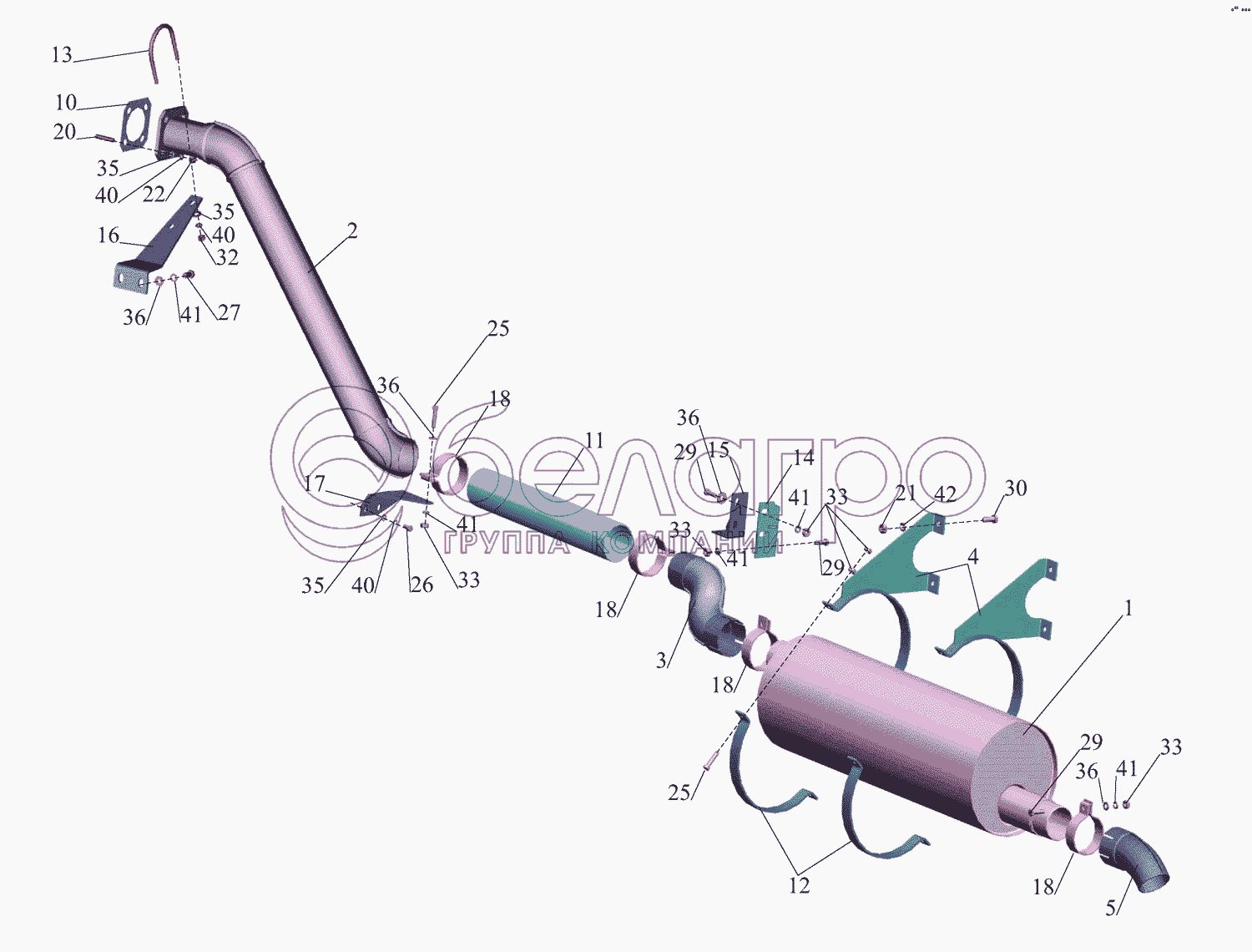 Каталог запасных частей к технике: МАЗ-437043 (Зубренок). Установка системы выпуска газов 437143-1200001