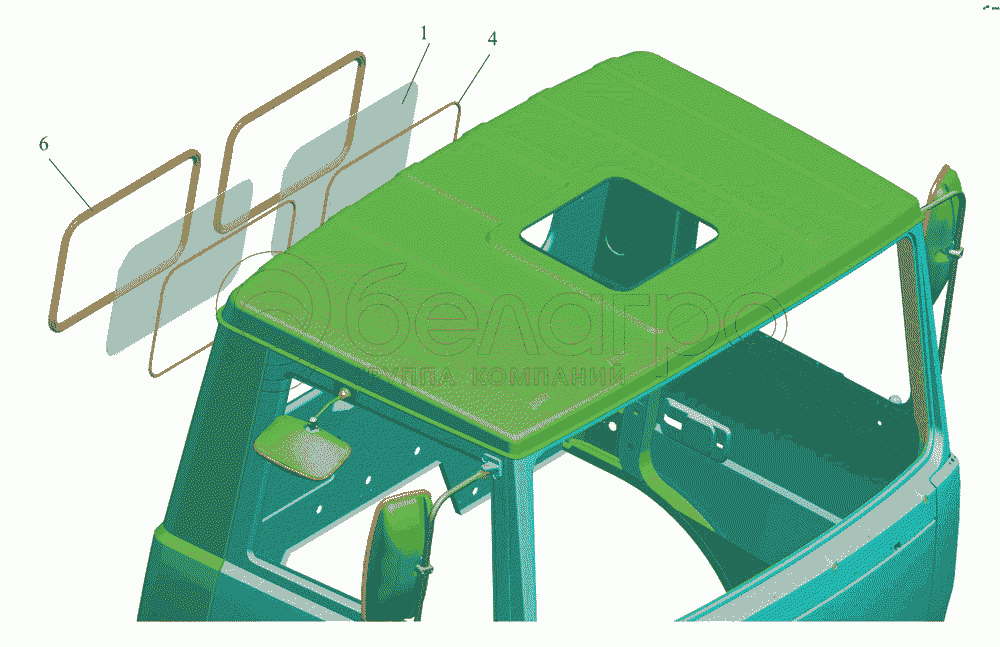 Каталог запасных частей к технике: МАЗ-437043 (Зубренок). Установка стекол задних 5551-5200012