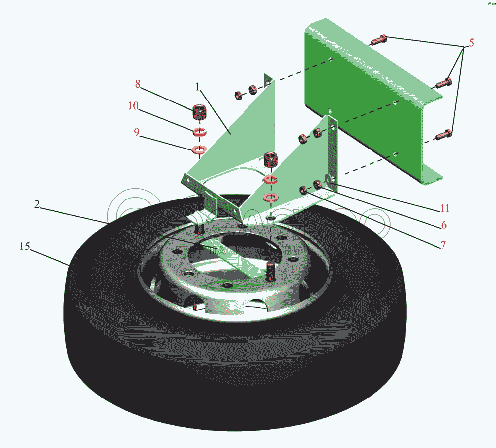 Каталог запасных частей к технике: МАЗ-437043 (Зубренок). Установка запасного колеса