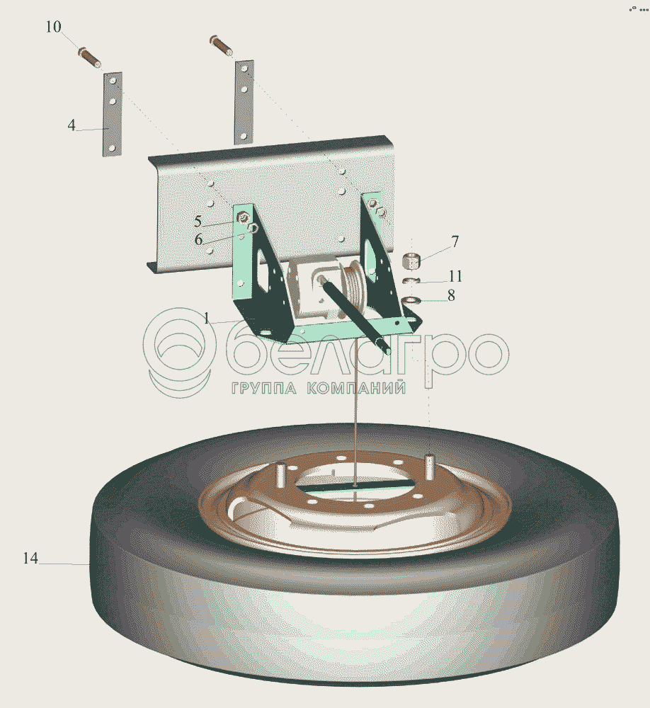 Каталог запасных частей к технике: МАЗ-437043 (Зубренок). Установка запасного колеса 437041-3100001