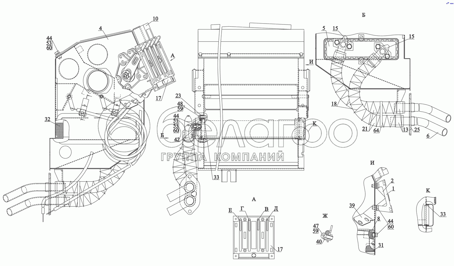 Каталог запасных частей к технике: МАЗ-437130 (Зубренок). Блок радиатора 544069-8101010