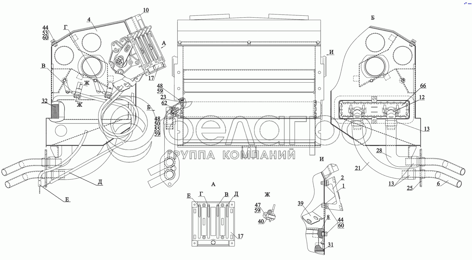 Каталог запасных частей к технике: МАЗ-437130 (Зубренок). Блок радиатора 5440-8101010-010