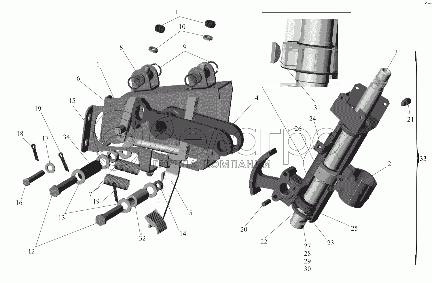 Каталог запасных частей к технике: МАЗ-437130 (Зубренок). Кронштейн с колонкой 5440-3403008