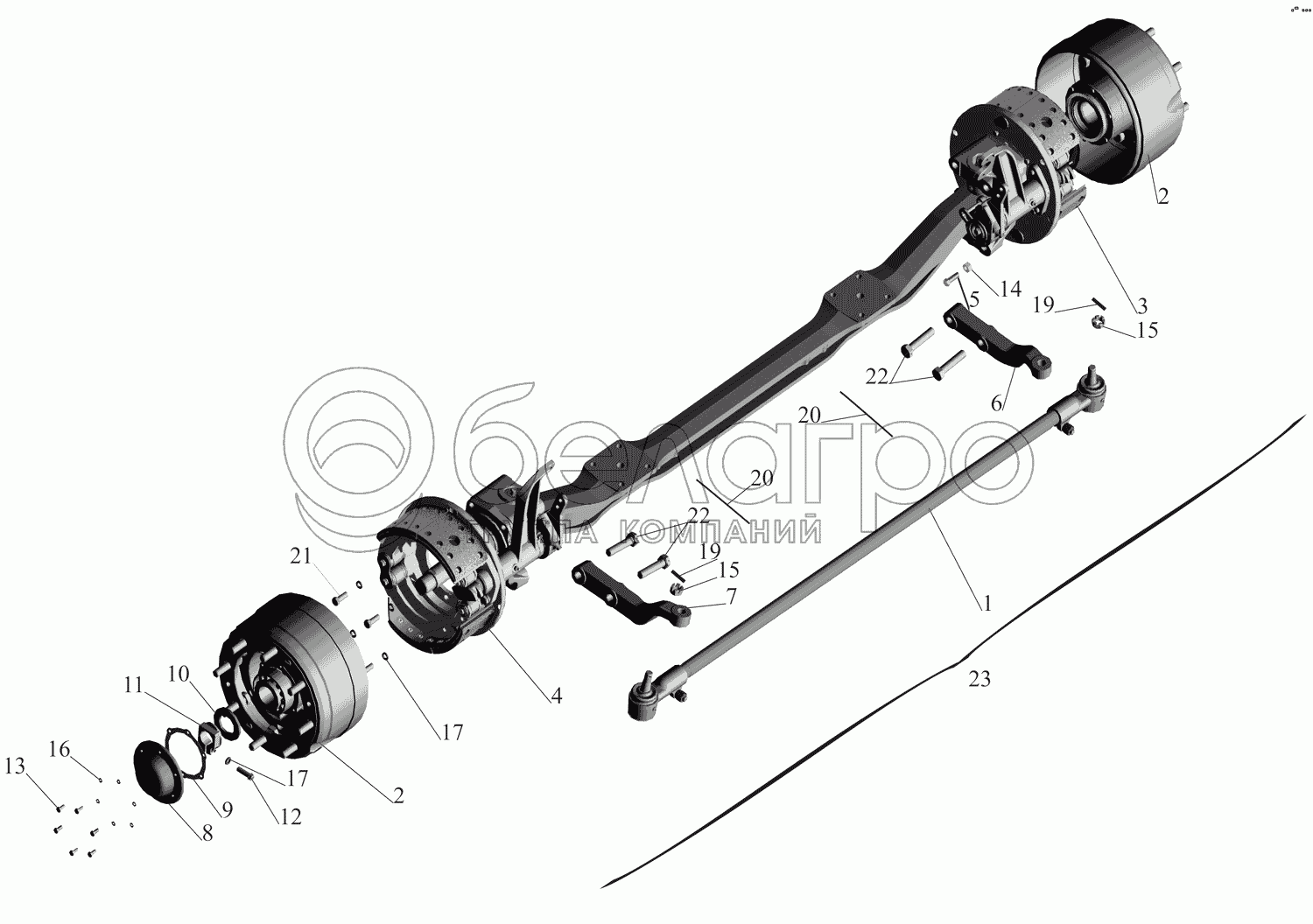 Каталог запасных частей к технике: МАЗ-437130 (Зубренок). Передняя ось 4370-3000015