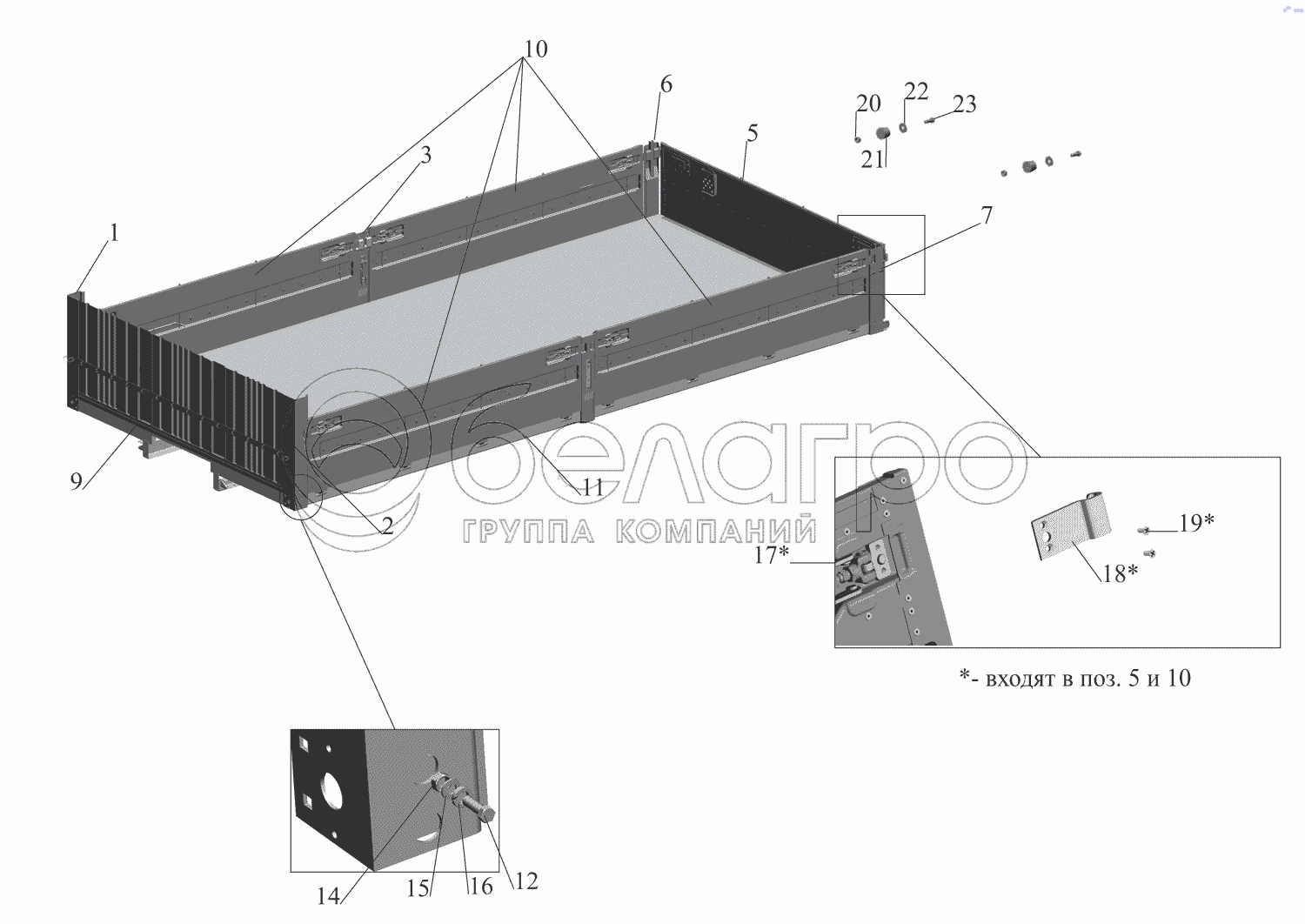 Каталог запасных частей к технике: МАЗ-437130 (Зубренок). Платформа