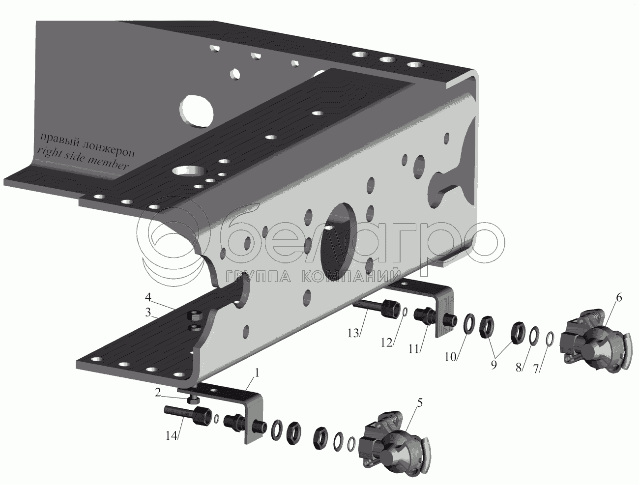 Каталог запасных частей к технике: МАЗ-437130 (Зубренок). Пневмовыводы к прицепу 63031-3521004