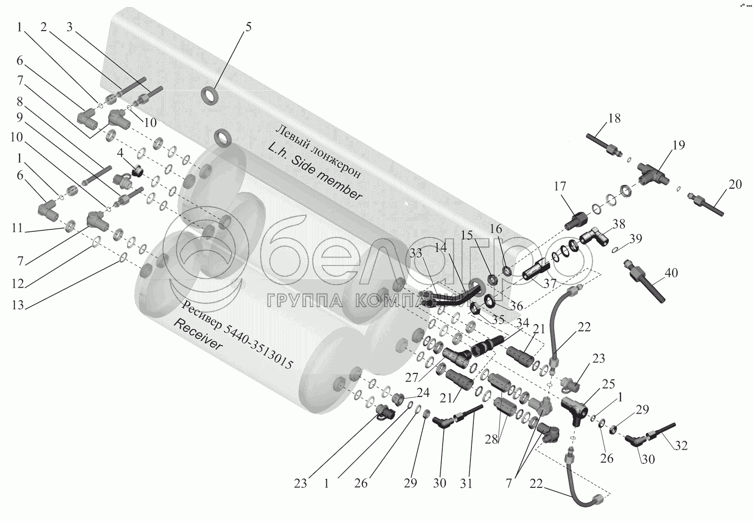 Каталог запасных частей к технике: МАЗ-437130 (Зубренок). Присоединительная арматура к ресиверам