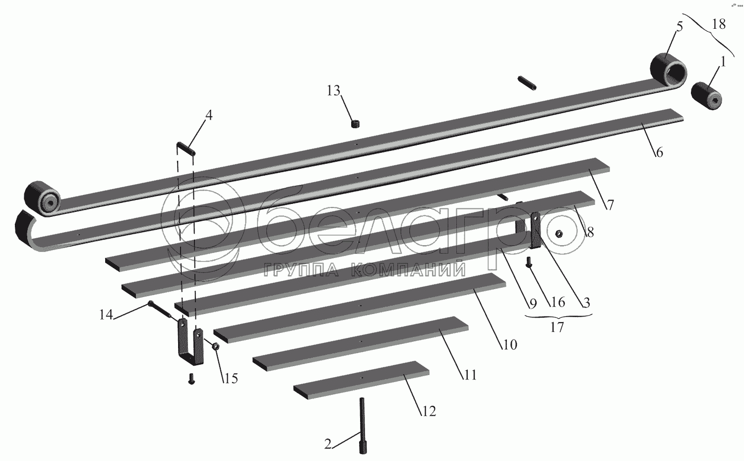Каталог запасных частей к технике: МАЗ-437130 (Зубренок). Рессора передняя 4370-2902012-011