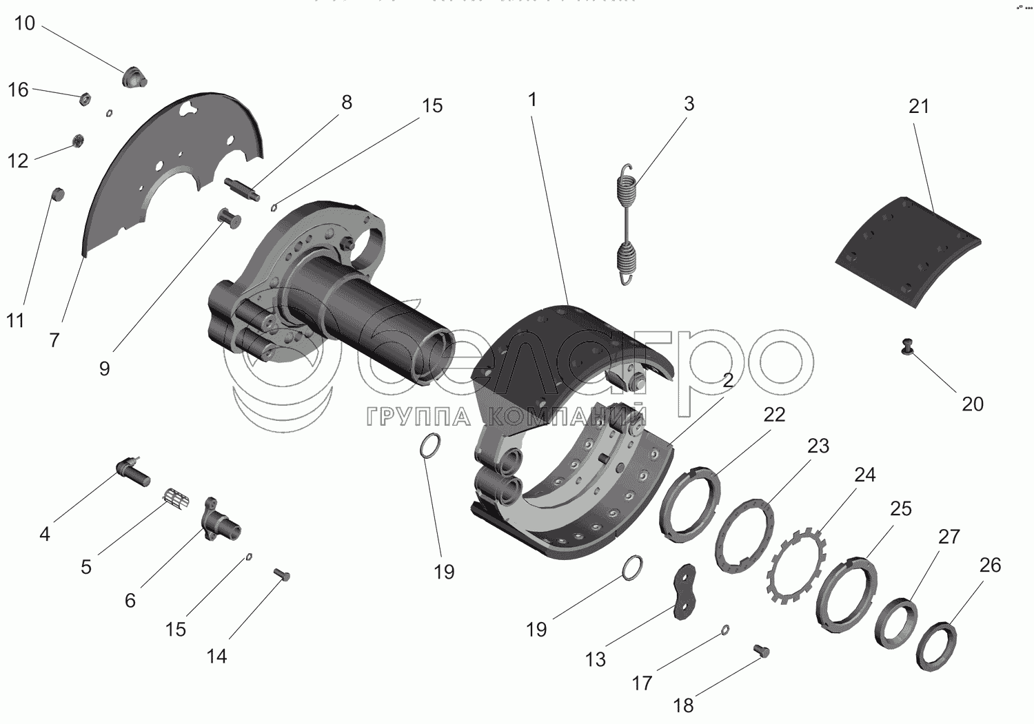 Каталог запасных частей к технике: МАЗ-437130 (Зубренок). Тормоз заднего колеса
