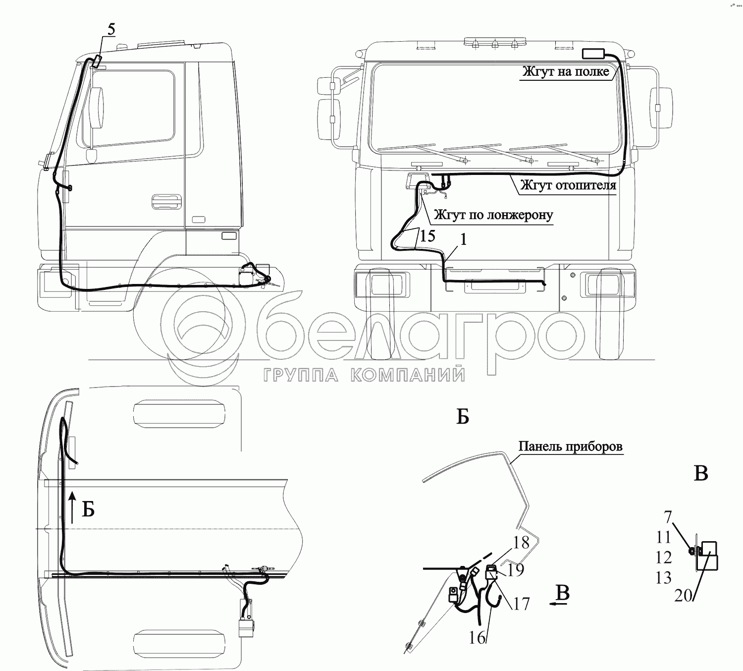 Каталог запасных частей к технике: МАЗ-437130 (Зубренок). Установка электрооборудования подогревателя 437141-3700085