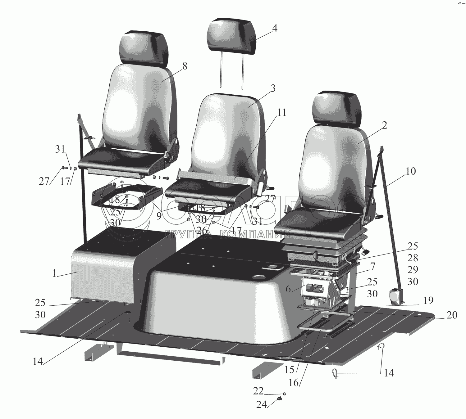 Каталог запасных частей к технике: МАЗ-437130 (Зубренок). Установка и пневмопитание сидений 437130-6800006