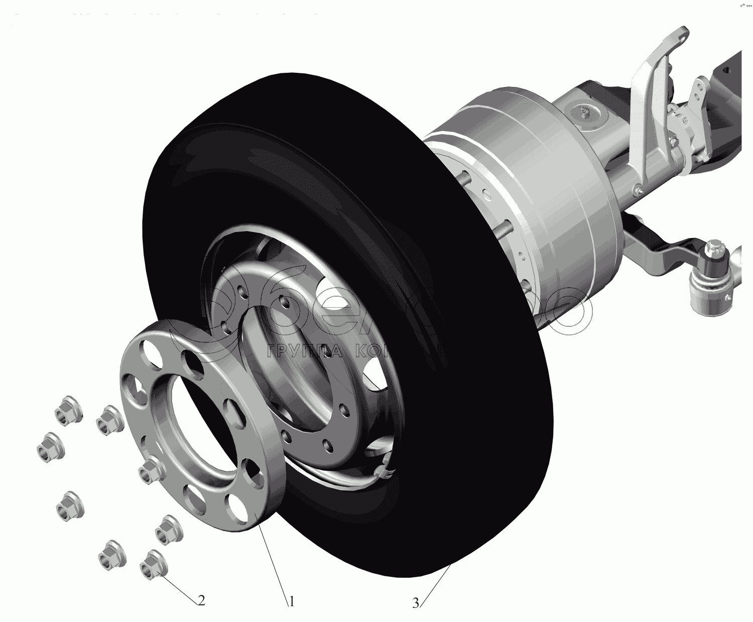Каталог запасных частей к технике: МАЗ-437130 (Зубренок). Установка передних колес