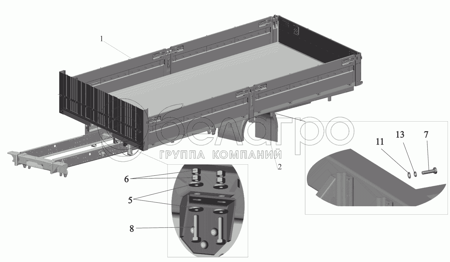 Каталог запасных частей к технике: МАЗ-437130 (Зубренок). Установка платформы