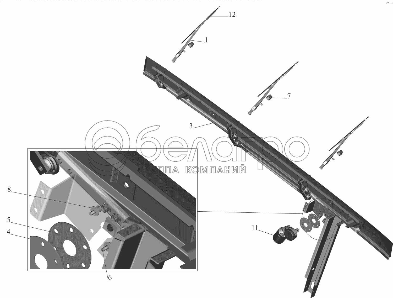 Каталог запасных частей к технике: МАЗ-437130 (Зубренок). Установка стеклоочистителя 6430-3700041-001