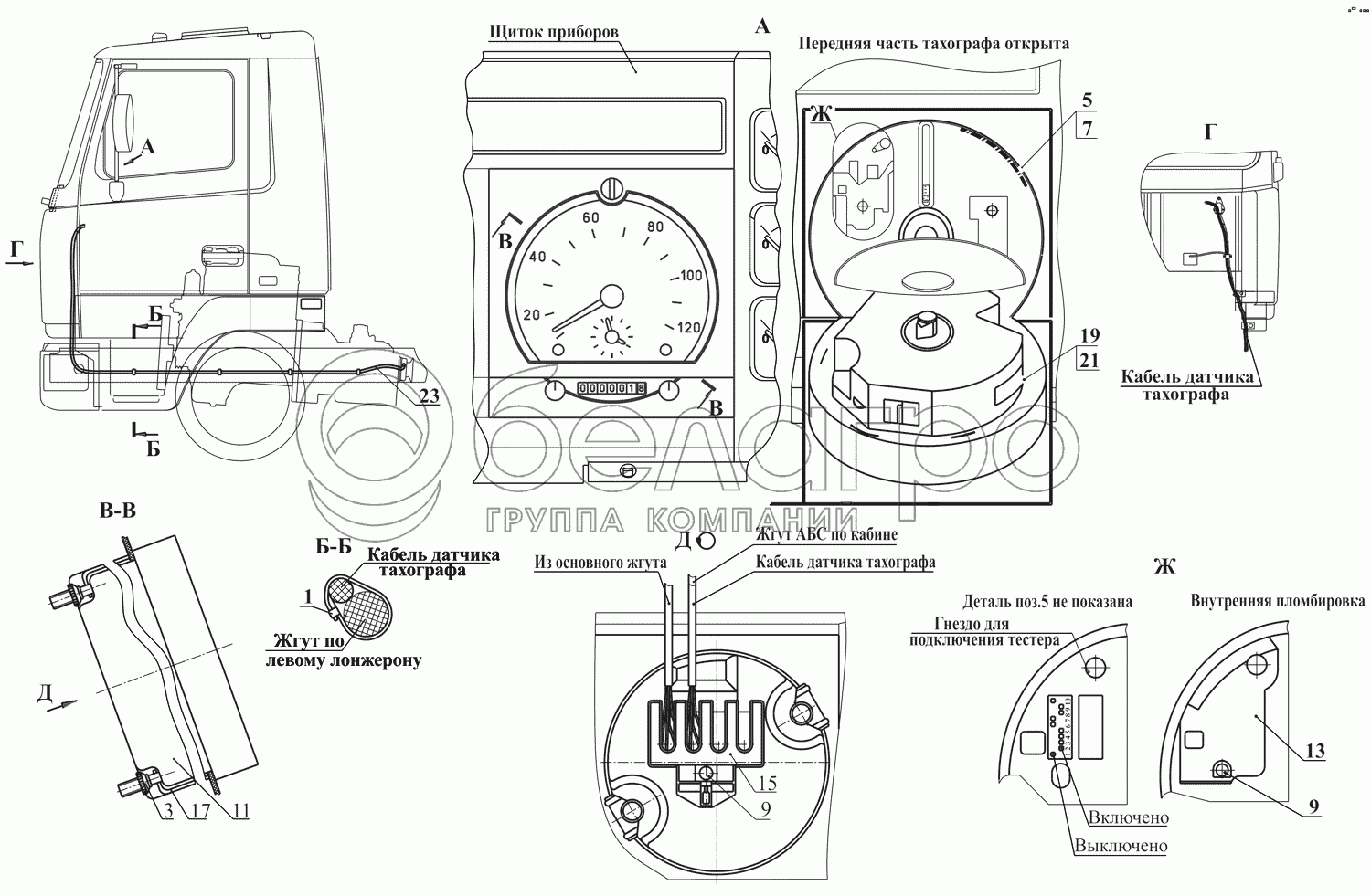 Каталог запасных частей к технике: МАЗ-437130 (Зубренок). Установка тахографа 437141-3800005-002