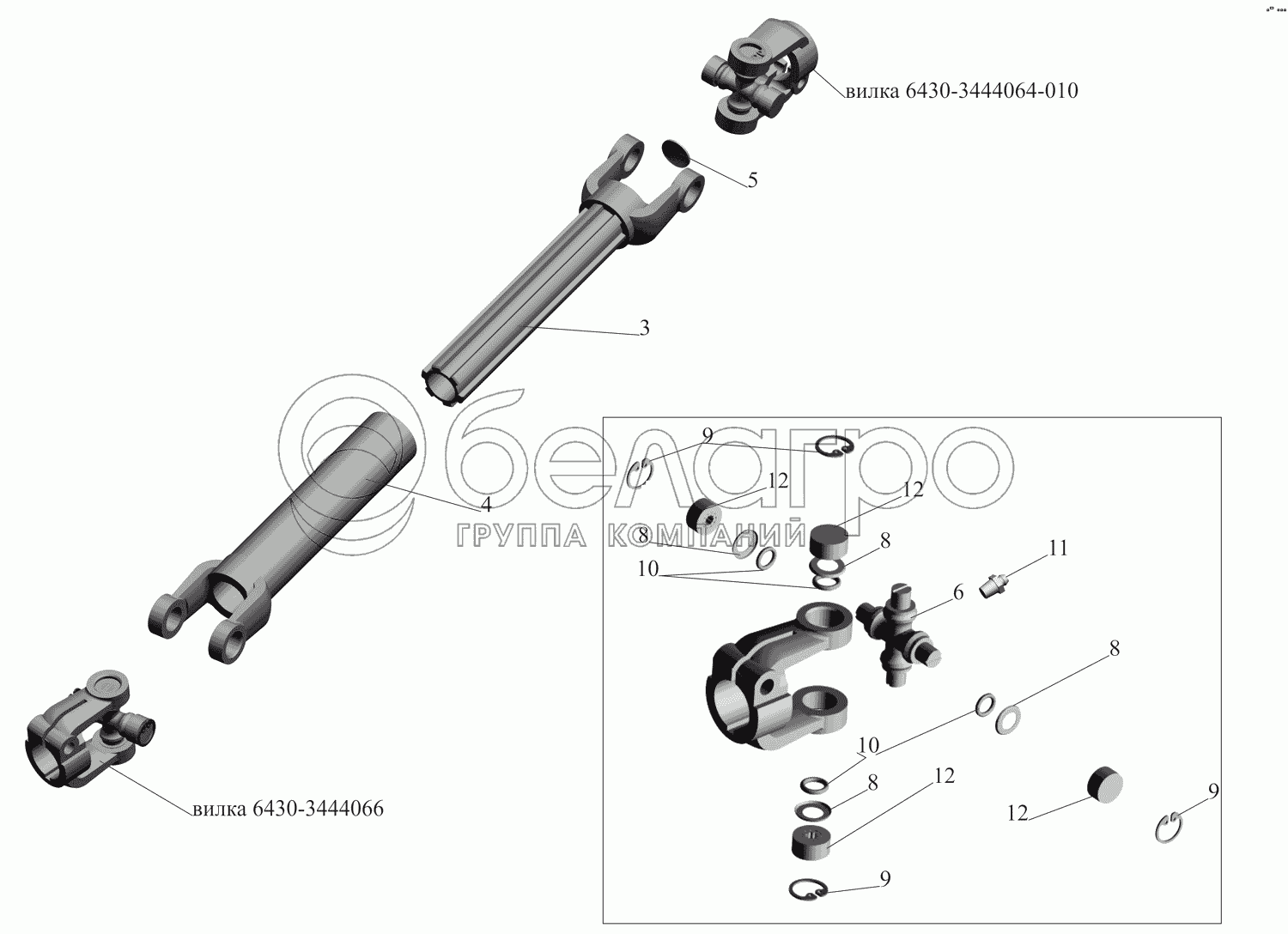 Каталог запасных частей к технике: МАЗ-437130 (Зубренок). Вал нижний 447131-3444050