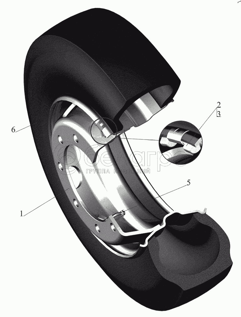 Каталог запасных частей к технике: МАЗ-4371P2-0000421-000. Колесо и шина