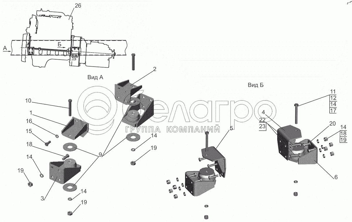 Каталог запасных частей к технике: МАЗ-4371P2-0000421-000. Крепление двигателя