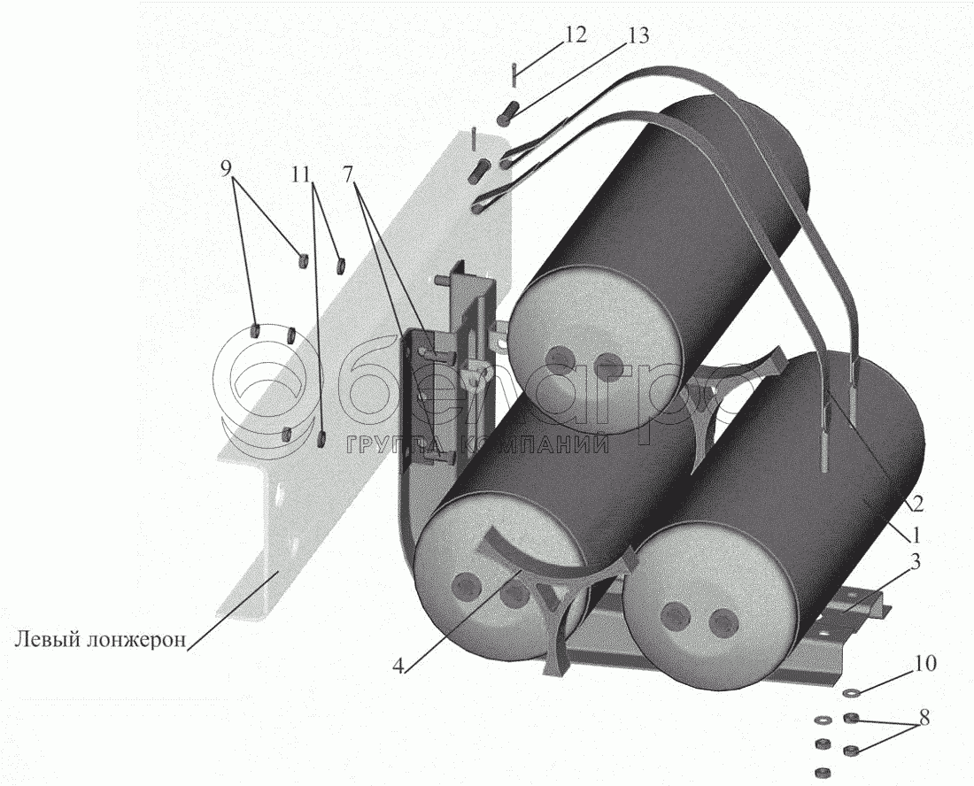 Каталог запасных частей к технике: МАЗ-4371P2-0000421-000. Крепление ресиверов 4370-3513004