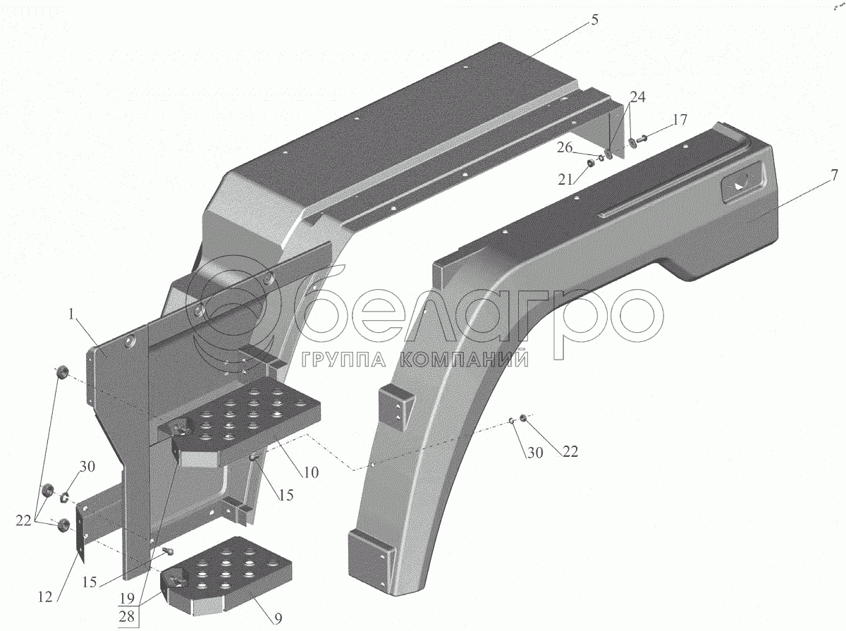 Каталог запасных частей к технике: МАЗ-4371P2-0000421-000. Оперение